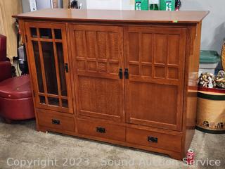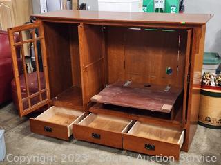 Lot #0067: Nice Oak 3-Drawer Media Center