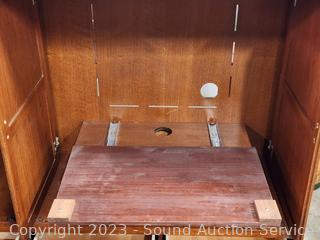 Solid wood construction. roller drawer guides, adjustable shelves. Slide out TV stand, cord holes. 49" H x 68" W x 23.25" D. Overall in great condition.