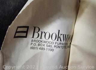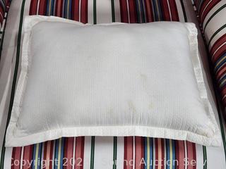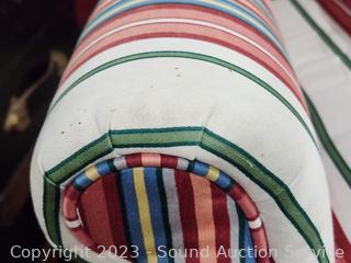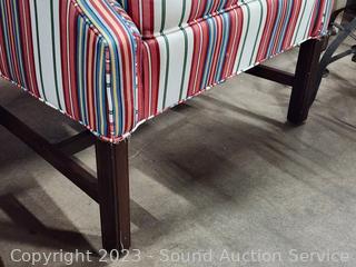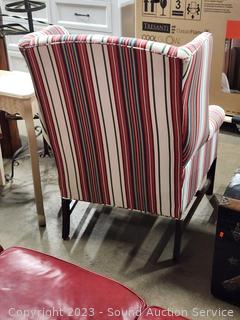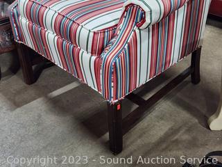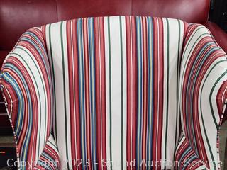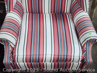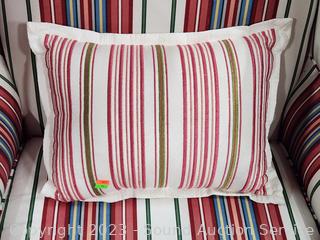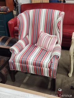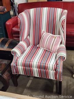 Lot #0010: Pinstripe Fabric Upholstered Armchair w/Lumbar Pillow