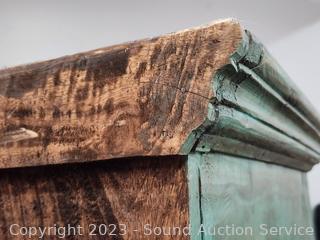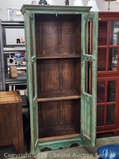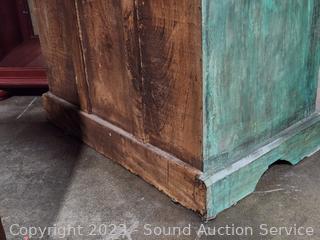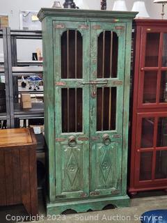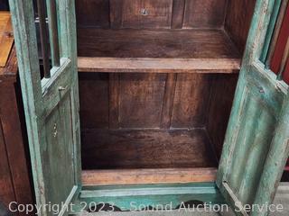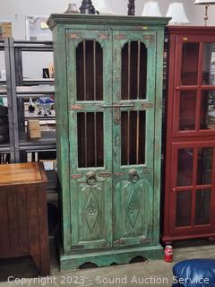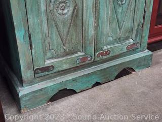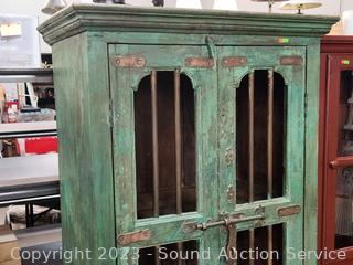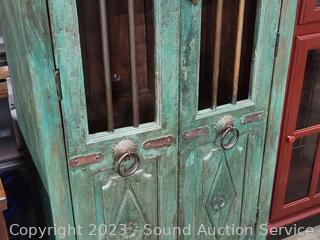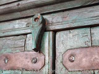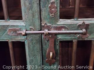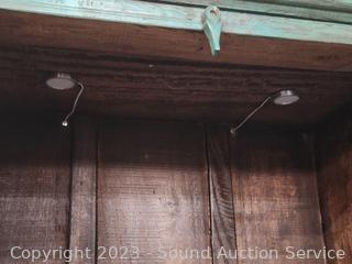 Some modern LED lights have been installed. Hand forged hardware, olde painted finish. 77.5" H x 32" W x 19.5" D.