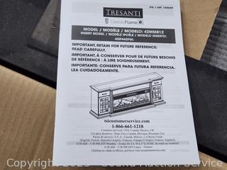 Did not appear to have ever been opened, contents are all sealed. Accommodates most TV's up to 80". Warms rooms up to 1000sq.ft. $749 retail value. 74.5" W x 17.4" D x 30.3" H. Refer to description for a complete list of specs. Item# 1656669. ATTN: Stock images, when included, are representations of the items and are not guaranteed to be exactly what is in the lot.