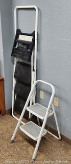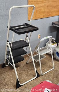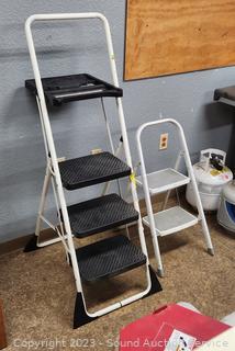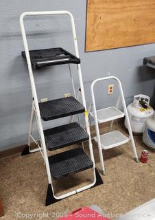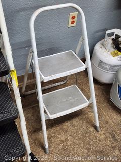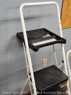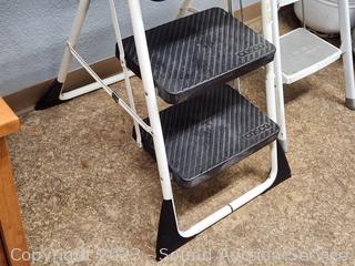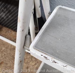 18" to step & Cosco 27.5" to step, 200lb capacity. Both with signs of wear from use, one more so than the other.