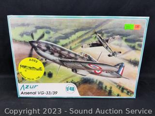 Azur Arsenal VG-33/39 is factory sealed, Hasegawa P-51D Mustang "Pacific Pinup Girl" contents are sealed, appears complete.
