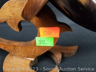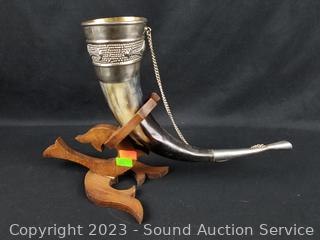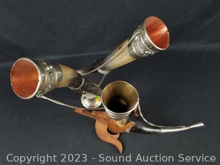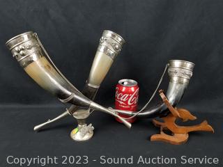 Lot #0312: 3 Viking Decorated Drinking Horns w/Stands