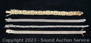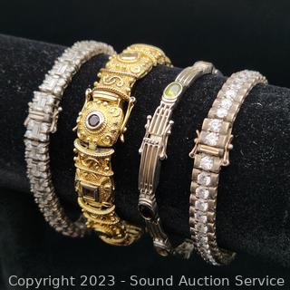 Lot #0108: 4 Sterling & Gemstone Set Bracelets