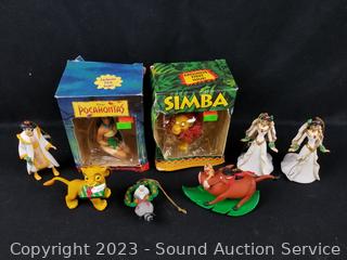 Pocahontas, Lion King & Aladdin figures. All in original packaging, Some damage to packages. Refer to photos for more info.
