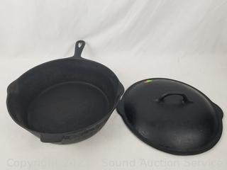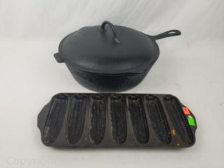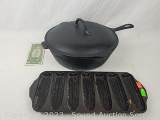 Lot #0251: Griswold Cast Iron Cornbread Pan & Other 11" Chicken Fry Pan w/Lid