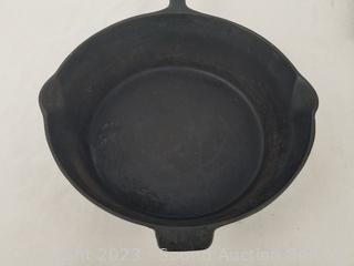 Signs of wear from use. Chicken Fry pan has a makers mark but unable to make out.