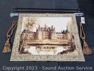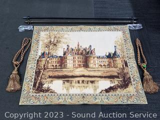 Lot #0134: Hand Finished Flemish Tapestry Chambord Castle w/Rod Hanger