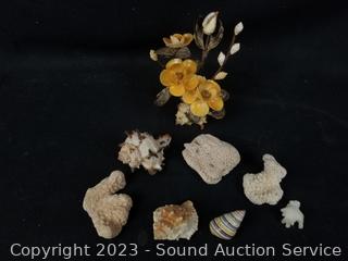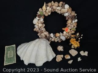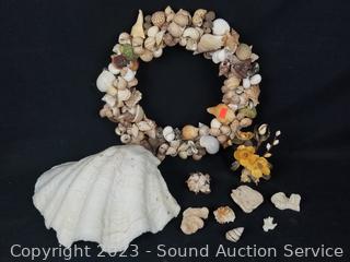 Lot #0327: Large Seashell, Seashell Wreath, Small Arrangement & Shells