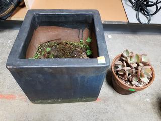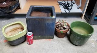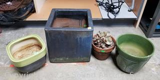 Lot #0154: Live Silver Dollar Jade Plant & 3 Pottery Planter Pots