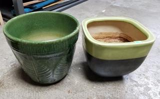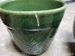 7" to 11" H x 8" to 11" Dia. Green one has a crack. Jade plant is 8.5" H x 6.5" Dia overall.
