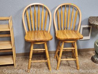 Lot #0046: Pair of Oak Swivel Counter Height Chairs