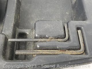 Signs of wear from use, appears to be functioning as intended. Comes with oil, hexkey wrenches & case.
