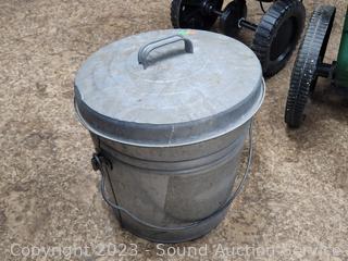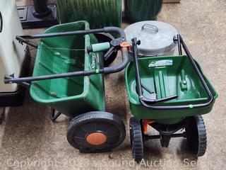 Lot #0042: Scotts Seed Spreader Mini & 3000 w/Galvanized Pail w/Lid