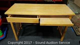 Has drawer and keyboard pullout. 47" by 30" by 20". Has some damage on the top.