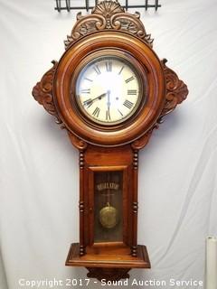 Lot #0142: Large Vintage Regulator A 55" Wall Clock with Key.