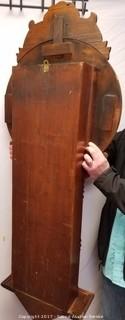 Large Vintage Regulator A 55" Wall Clock with Key. Tries to stay running. Runs for a little bit appears to be over wound. May need serviced. As found in estate. Approx. 55" x 21" x 6"