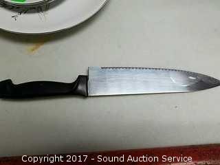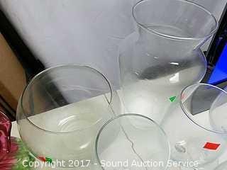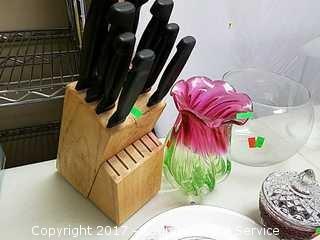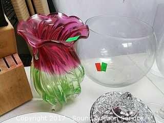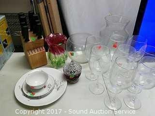 Lot #0104: Mixed Lot of China, Stemware, Vases & Knives