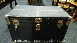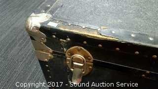 Lot #0005: Vintage Black Handled Trunk 33 X 21 X 19"
