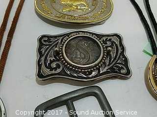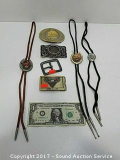 Lot #0135: 4 Belt Buckles & 3 Bolo Ties