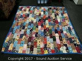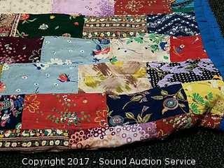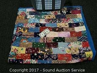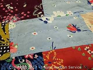Lot #0087: 72" x 78" Hand Stitched Quilt & Laundry Basket