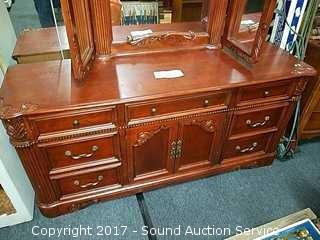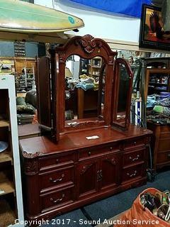 Lot #0075: Chanin Ltd Ornate Carved 9 Drawer Dresser w/Mirror