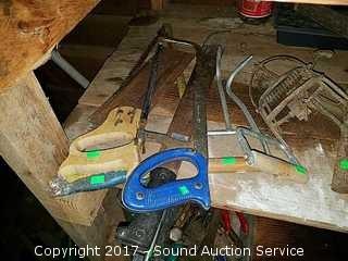 Lot #0048: Collection of Saws, Gardening & Farm Tools