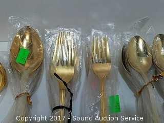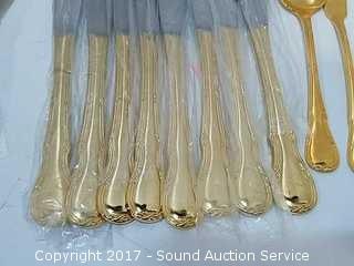 Lot #0026: Home Concepts Gold Tone Stainless Flatware Set
