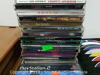 Comes with two CD cases and Playstation games. Mostly hip hop, some soundtracks, some classic. Please refer to photos.