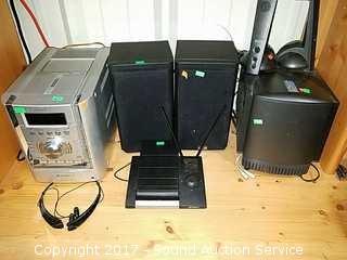 Includes: Altech Lansing Computer speakers with sub, Sony 5 disc changer. All works!