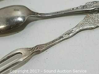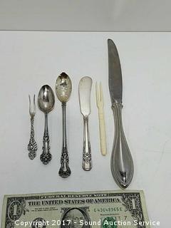 Includes; Vernon silverplate butter knife, Extra PRNS fork, Roger Bros triple plated spoon and stainless butter knife.