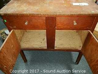 Lot #0095: Vtg. Solid Wood 2 Drawer Cabinet