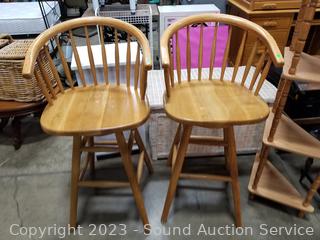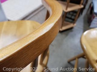 Lot #0007: 2 Oak Banister Back Counter Height Chairs