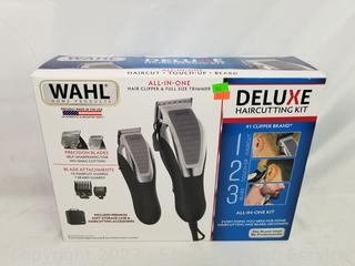 Lot #0243: Wahl Deluxe All-in-One Hair Clipper & Full Sizer Trimmer Kit