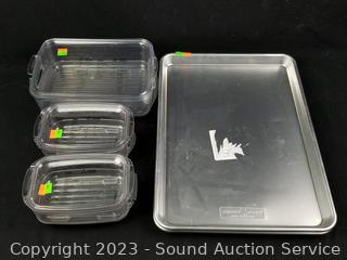 Lot #0286: 3 Air Flow Food Storage Containers & 2 Aluminum Baking Pans