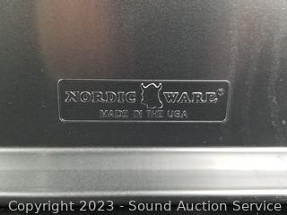 Large container is missing the Air flow valves, others are complete, don't see any major issues. 12.75" x 18" aluminum baking sheets, (2) 3" x 6.5" x 4" & (1) 3.5" x 9.5" x 7" food storage containers.