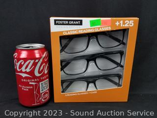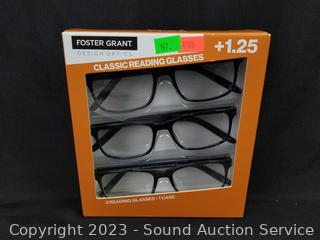 Lot #0197: 3 Foster Grant Classic +1.25 Reading Glasses w/1 Case