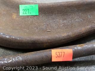 309 Lots including Antique Wood Banded Chest, Rustic Lawn & Garden Decor, Patio Table & chair Sets, Vtg. Crosscut Saws, Vintage/Antique Rustic Tools, Antique Ford Jacks, Model "T" Rims/Tires, Ladies Clothing, Uranium? Glass Biscuit Jar, Concrete Mixer, Gold & Silver Jewelry, Sewing Machine, Wicker Furniture/Decor, Assorted Household Goods, Kitchen Cookware, Camping & Outdoor & Much More!!!