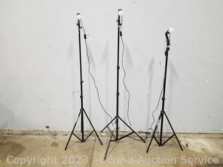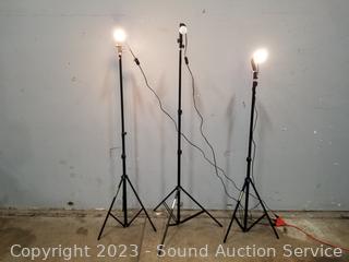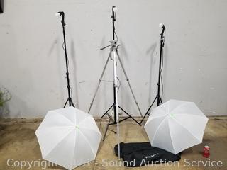 Lot #0154: 3 Tripods w/Lights, 1 Camera Tripod & 2 Diffusers