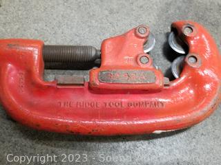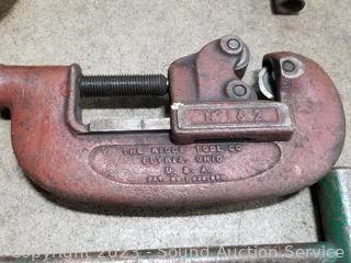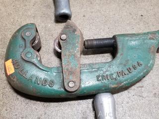 Believe cut up to 2" pipes. Signs of wear from use. By Hollands, Ridge, Ridgid & Reed.