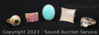 Lot #0164: 5 Sterling & Stone Set Rings S:7