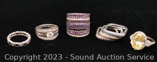 Lot #0161: 7 Sterling & Stone Set Rings S:7.5 & 8