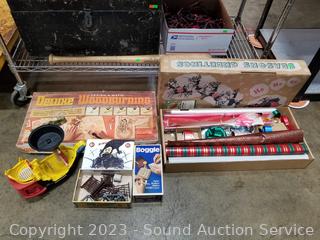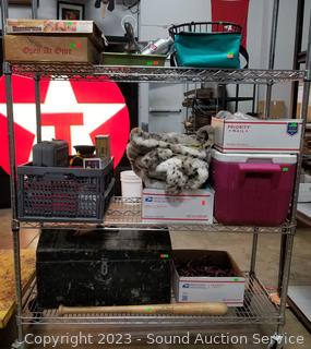 309 Lots including Antique Wood Banded Chest, Rustic Lawn & Garden Decor, Patio Table & chair Sets, Vtg. Crosscut Saws, Vintage/Antique Rustic Tools, Antique Ford Jacks, Model "T" Rims/Tires, Ladies Clothing, Uranium? Glass Biscuit Jar, Concrete Mixer, Gold & Silver Jewelry, Sewing Machine, Wicker Furniture/Decor, Assorted Household Goods, Kitchen Cookware, Camping & Outdoor & Much More!!!