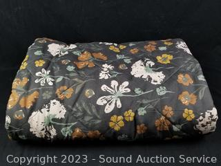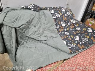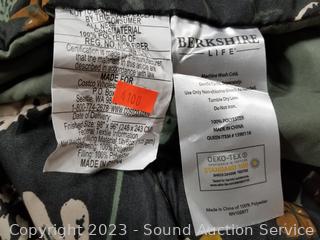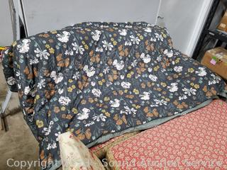 98" x 96". Some minor loose threads on underside seam, don't see any other issues.