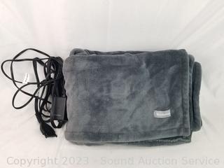 Lot #0263: Brookstone Gray Plush 50" x 60" Heated Throw
