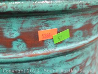 309 Lots including Antique Wood Banded Chest, Rustic Lawn & Garden Decor, Patio Table & chair Sets, Vtg. Crosscut Saws, Vintage/Antique Rustic Tools, Antique Ford Jacks, Model "T" Rims/Tires, Ladies Clothing, Uranium? Glass Biscuit Jar, Concrete Mixer, Gold & Silver Jewelry, Sewing Machine, Wicker Furniture/Decor, Assorted Household Goods, Kitchen Cookware, Camping & Outdoor & Much More!!!