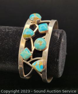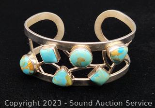 Lot #0163: Mexico Native Sterling & Turquoise Cuff Bracelet
