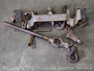 309 Lots including Antique Wood Banded Chest, Rustic Lawn & Garden Decor, Patio Table & chair Sets, Vtg. Crosscut Saws, Vintage/Antique Rustic Tools, Antique Ford Jacks, Model "T" Rims/Tires, Ladies Clothing, Uranium? Glass Biscuit Jar, Concrete Mixer, Gold & Silver Jewelry, Sewing Machine, Wicker Furniture/Decor, Assorted Household Goods, Kitchen Cookware, Camping & Outdoor & Much More!!!