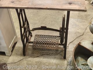 309 Lots including Antique Wood Banded Chest, Rustic Lawn & Garden Decor, Patio Table & chair Sets, Vtg. Crosscut Saws, Vintage/Antique Rustic Tools, Antique Ford Jacks, Model "T" Rims/Tires, Ladies Clothing, Uranium? Glass Biscuit Jar, Concrete Mixer, Gold & Silver Jewelry, Sewing Machine, Wicker Furniture/Decor, Assorted Household Goods, Kitchen Cookware, Camping & Outdoor & Much More!!!